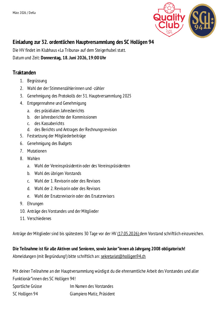Für Infos und Interesse melde dich beim sekretariat@holligen94.ch.
